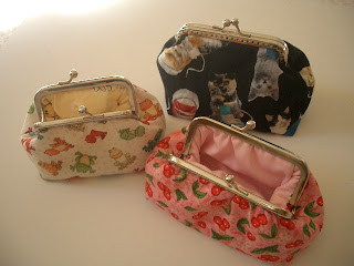 Conjunto de bolsa multiusos, porta moedas fecho da vovó, porta lenços, e porta moedas chaveiro, tudo com tecido de bolinhas.